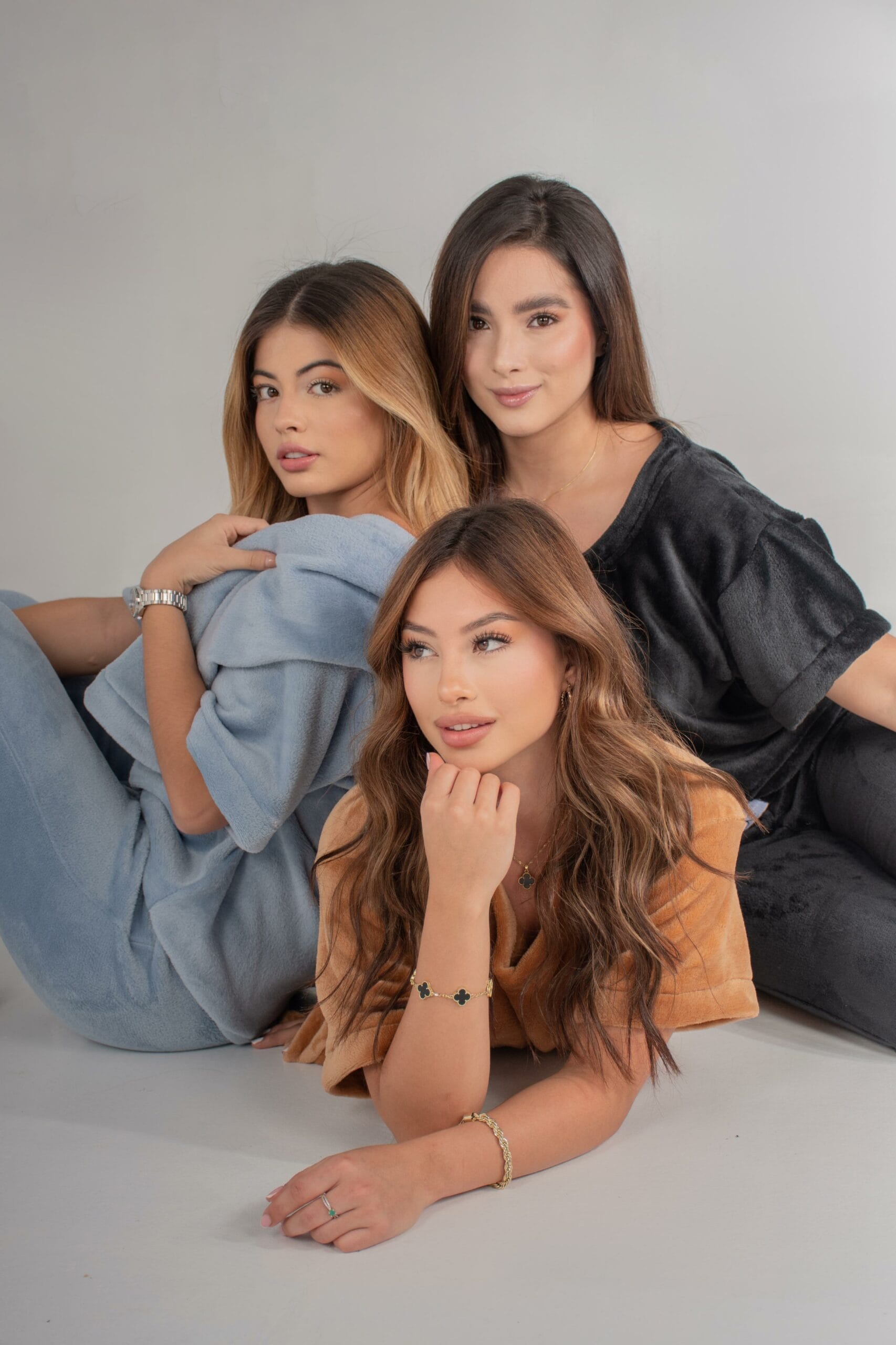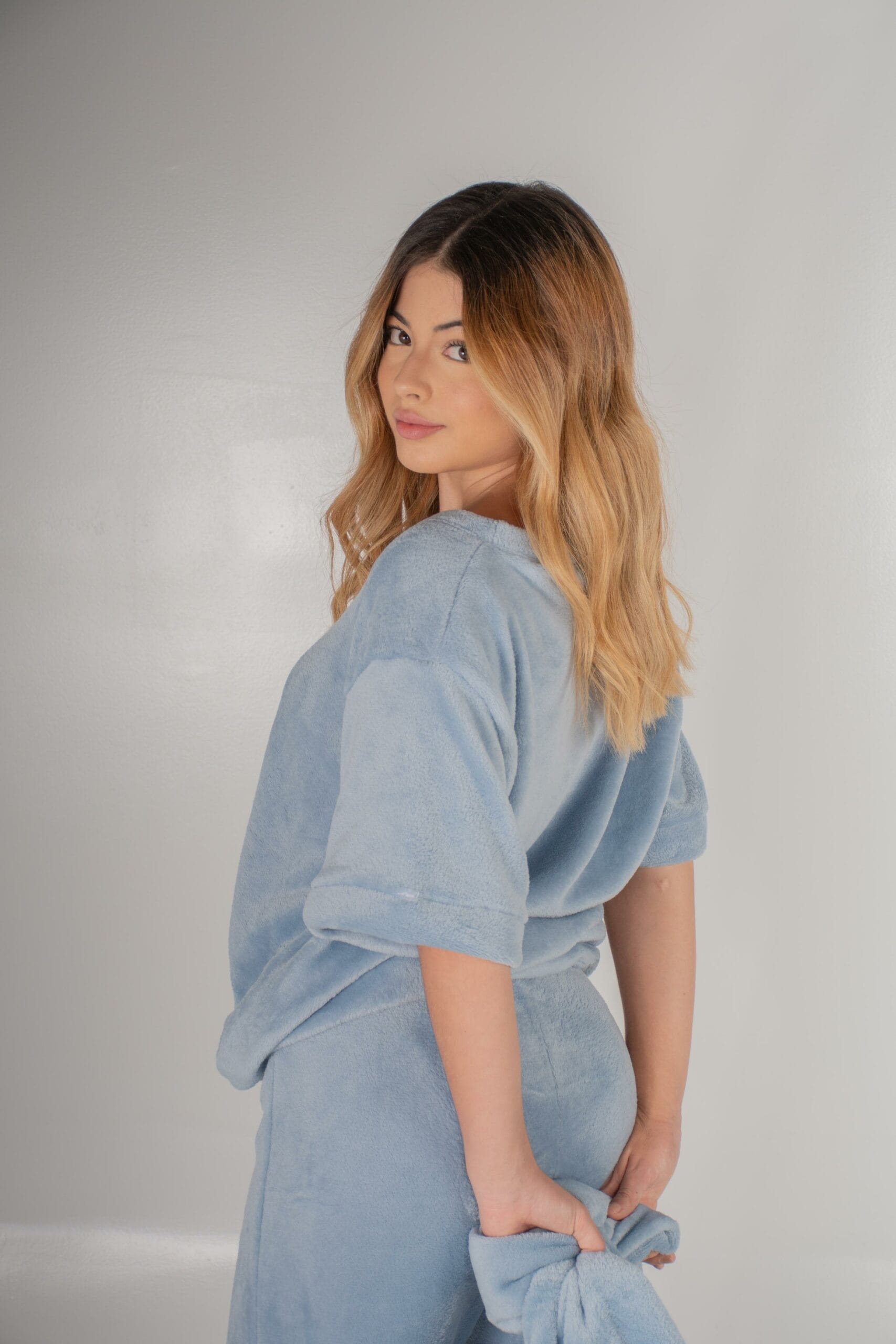 El set Osi está hecho en una tela tipo piel de conejo que se siente como un abrazo.
